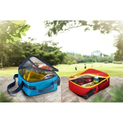 600D thermal bag with mesh interior pocket and adjustable webbing strap. With a capacity of up to 45 L. 200 x 200 x 110 mm