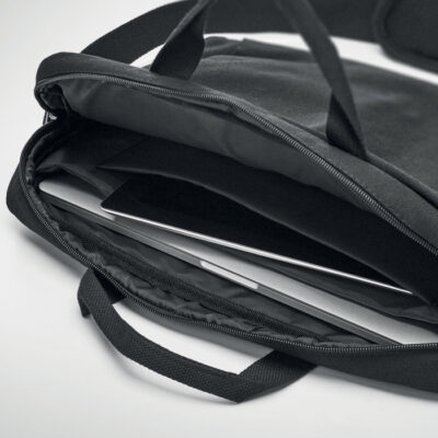 15 inch laptop bag in 340 gr/m² washed canvas . Padded detachable and adjustable shoulder strap. Back trolley strap.
