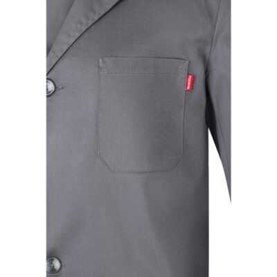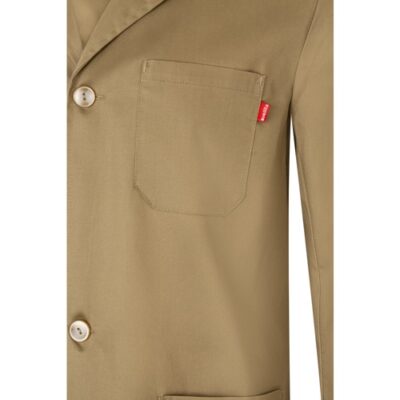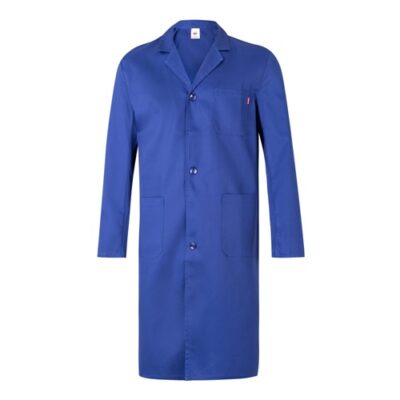 Twill blouse (175g/m²), in cotton (35%) and polyester (65%). With buttons, belt at the back and 3 pockets. Size: 46, 48, 50, 52, 54, 56, 58, 60, 62, 64