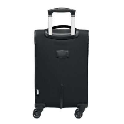 600D RPET Polyester soft side cabin trolley. Including exterior zipped laptop compartment. Zipped front pocket. Combi lock. Bottom compartment with ribbons.