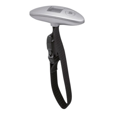 Luggage scale in ABS casing. Maximum capacity measure: 40 kg. Unit measure in kilogram or pounds. Powered by 1 cell battery included. Individual packaging in silver carton box.