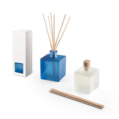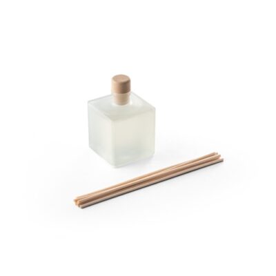 Aroma diffuser in glass bottle with wood lid. The diffuser rods are made of rattan – a natural fibre perfect for diffusing fragrances. Quantity up to 100 mL. Supplied in individual gift box. Made in Europe.Colour 105 – Red berries fragranceColour 104 – Jasmine fragranceColour 106 – Vanilla notesColour 133 – Fragrance of cinnamon and lemon 57 x 80 x 57mm