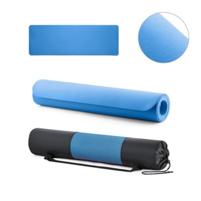 EVA exercise mat for yoga. Up to 4mm thick. Includes polyester bag with netting to prevent odours and an adjustable carrying strap . Closed: Ø115 x 635 mm | Open: 1830 x 610 x 4 mm