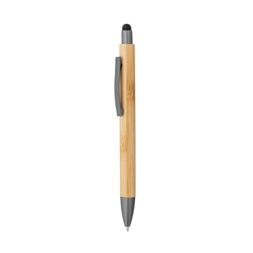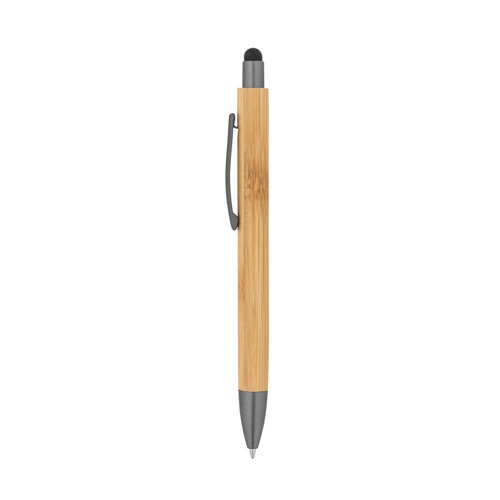 Bamboo ball pen with a metal clip, PP elements and matt finish. Features a touch tip in black for use with touch screens devices. Black ink. As the product is made from natural materials, the colour and the printing result may vary between products. Ø11 x 141 mm